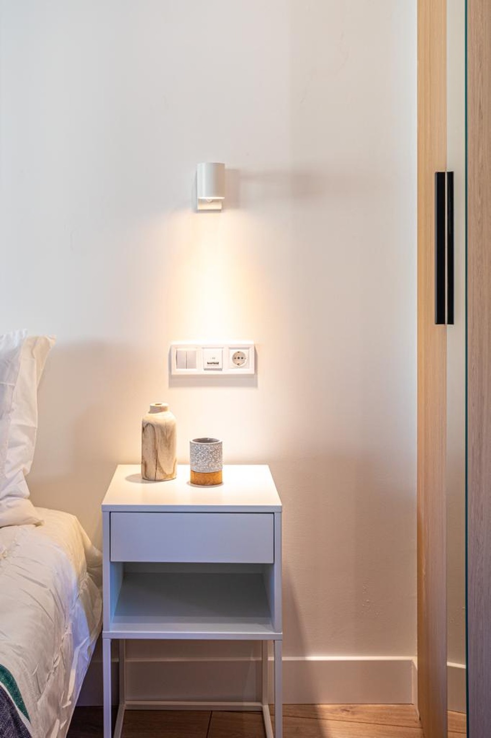 La habitación es luminosa y está perfectamente equipada, con los siguientes complementos: 1 cama de 1,35 m con almohadas y cojines, juego de sábanas y edredón, doble mesita de noche con lámpara, un espacioso armario empotrado, calefacción por gas natural individual y cerramientos de doble cristal con las mejores calidades. Cuenta, además, con un baño privado en suite, con ventana y plato de ducha.