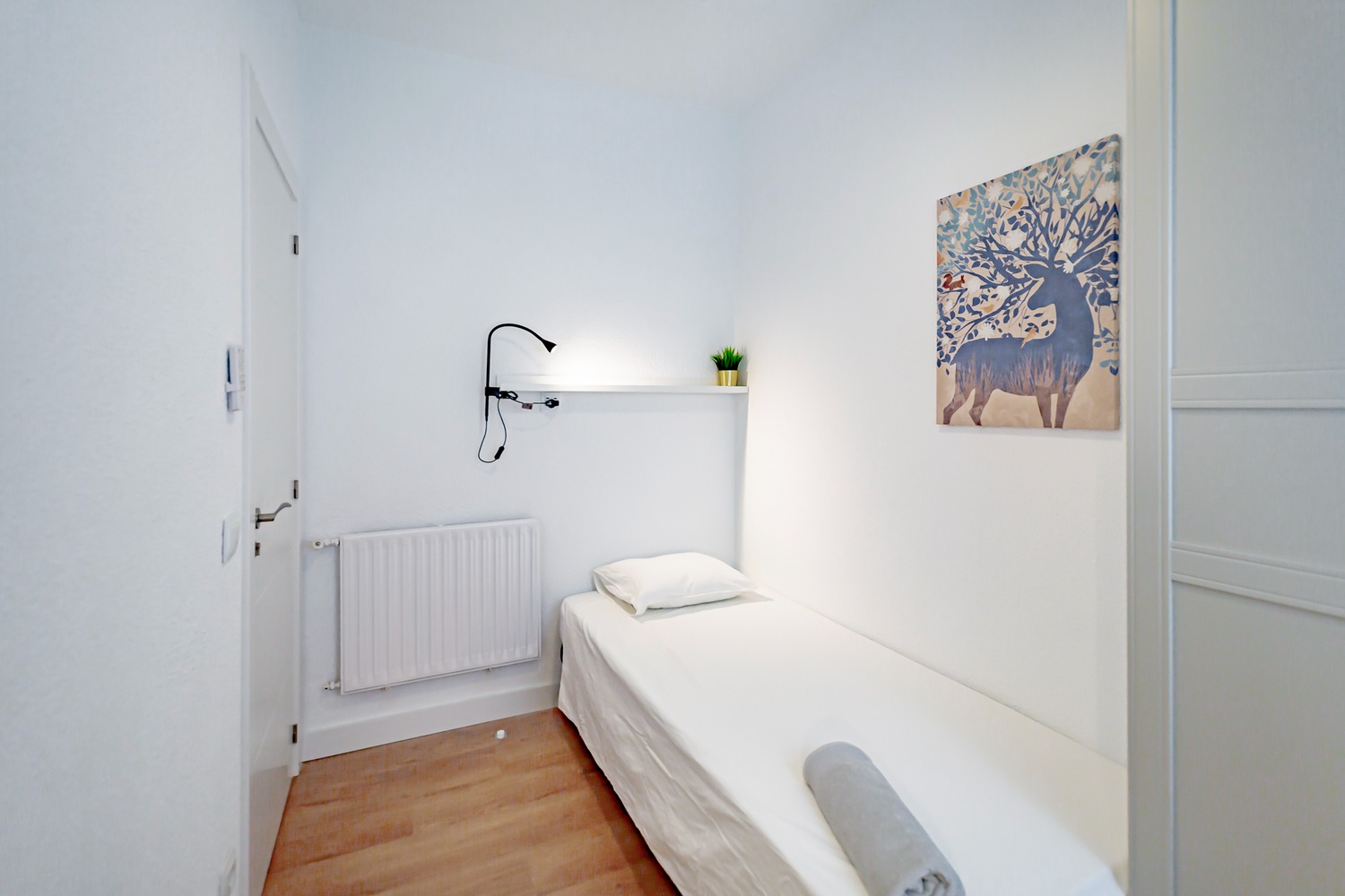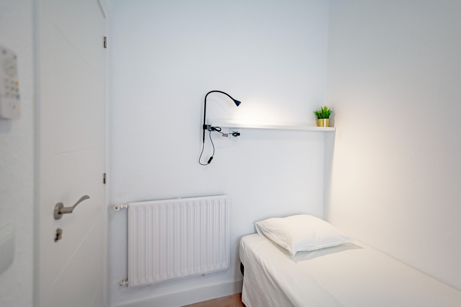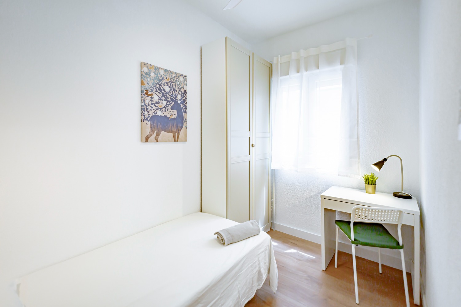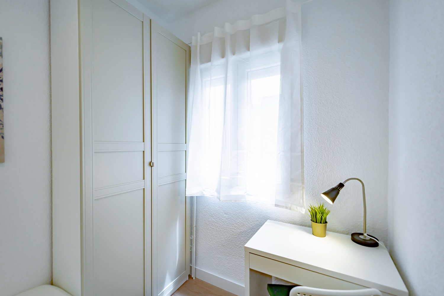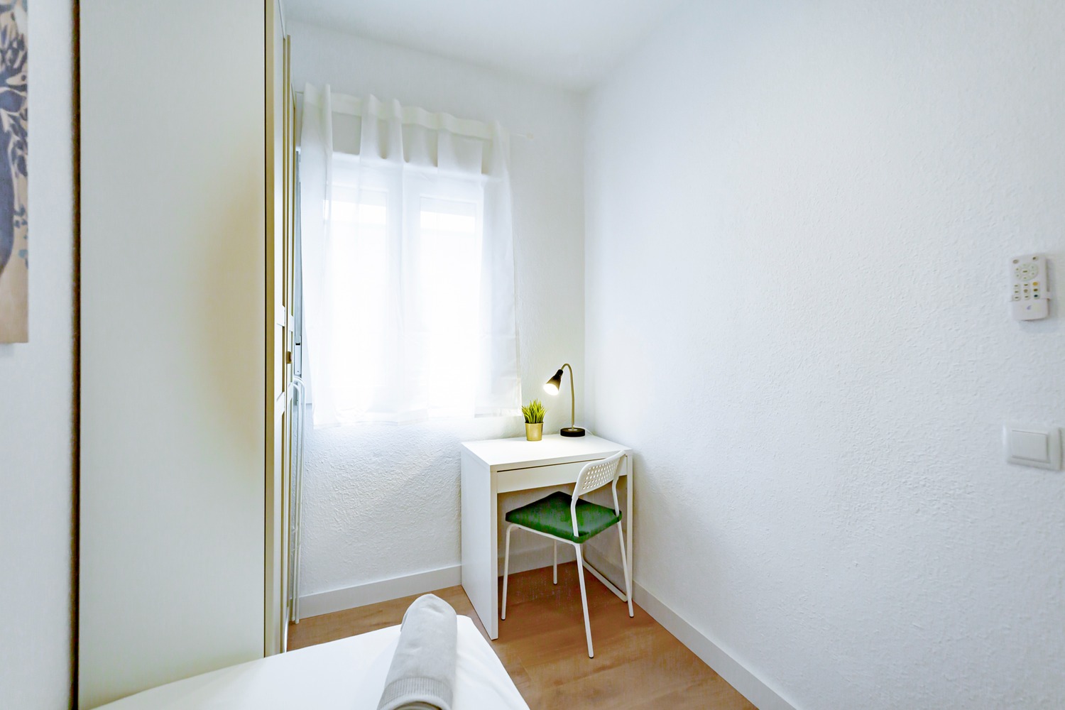 Estupenda habitación privada en alojamiento de estudiantes reformado en 2022. Alquilamos esta habitación privada, perfectamente acondicionada y con iluminación natural, con una superficie aproximada de 8m2. Para las horas de estudio, cuenta con un escritorio cómodo con flexo, cajones y un espacio de almacenaje, y una silla de conferencia. El mobiliario se completa con un armario de 0,95cm —en cuyo interior incluye una barra para las perchas—, una mesilla de noche y lámpara de techo, la cama de ancho 0,90cm. Se ha equipado adicionalmente con enchufes con puerto USB, ventilador de techo con mando a distancia y calefacción por gas natural.