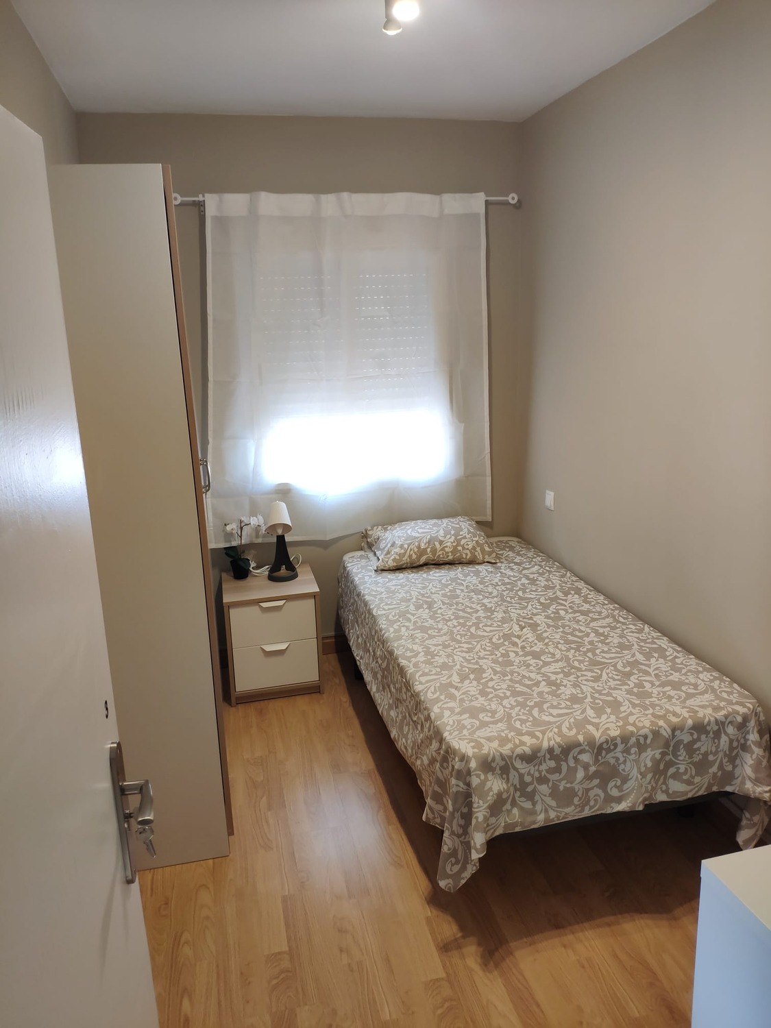 La habitación es luminosa y está perfectamente equipada, con los siguientes complementos: 1 cama de 1,05 cms con almohada, juego de sábanas y edredón, mesita de noche con lámpara, armario, escritorio con silla y calefacción eléctrica. Todas las habitaciones incluyen conexión wifi por fibra de alta velocidad.