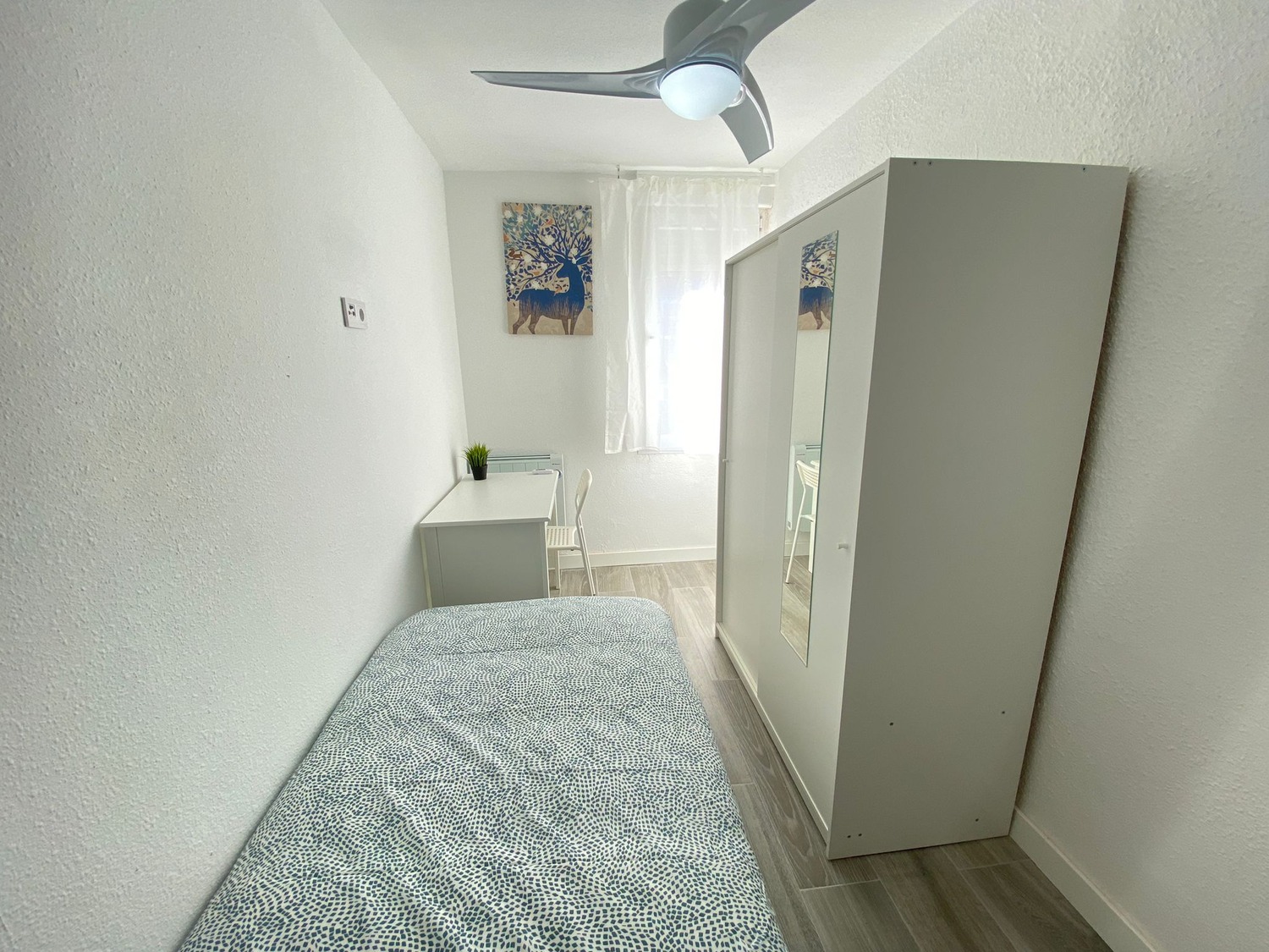 ¡Bienvenidos a “Hortaleza”! Capital Rooms alquila, ¡Estupenda habitación privada en alojamiento de estudiantes y jóvenes trabajadores recientemente reformado, a estrenar!. Alquilamos esta habitación privada con cerradura, perfectamente acondicionada y con iluminación natural, con una superficie aproximada de 10m2. Cuenta con un escritorio cómodo, una silla de conferencia. El mobiliario se completa con un armario—en cuyo interior incluye tendedero y una barra para las perchas— Ventilador de techo con mando a distancia y calefacción eléctrica, la cama de ancho 1,09 m. La vivienda cuenta con las siguientes zonas comunes: Una cocina, equipada con electrodomésticos nuevos: vitrocerámica, campana, microondas y frigorífico. Con todo menaje necesario (cubertería completa de uso exclusivo para cada huésped). Posee 2 baños completos con plato de ducha de cómodo acceso desde cualquier habitación y dotados de excelentes calidades. Otros servicios añadidos: Limpieza dos veces al mes de las zonas comunes. Wifi de alta velocidad. Calefacción eléctrica y lavadora propia. Puedes disfrutar a de su inmejorable ubicación, a 350 metros del metro Parque de Sta. María, Línea 4, (COLOR MARRON), con conexión directa a PINAR DE CHAMARTIN, CANILLLAS, BILBAO, ARGUELLES, y varias líneas de autobuses. A solo 2 minutos del Mercadona, 4 minutos del Carrefour y 5 minutos del Ahorramas. Disfruta de esta estancia acogedora, en un ambiente respetuoso y bien cuidado y, con una excelente convivencia, controlada por profesionales.