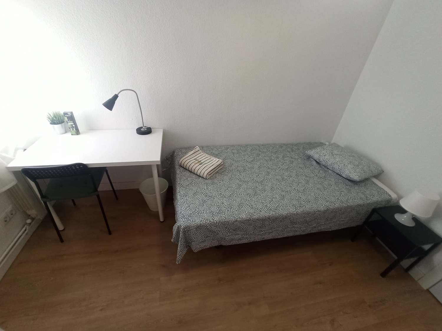 Capital Rooms alquila esta fantástica habitación en piso compartido, ubicada en la calle de Benalmádena 1, que pertenece al madrileño distrito de Entrevías. La habitación es muy luminosa y está perfectamente equipada, con los siguientes complementos: 1 cama de 1.05 m con almohada, juego de sábanas y edredón, escritorio con silla para tus horas de estudio, armario. Calefacción por gas natural. Todas las habitaciones incluyen conexión Wifi por fibra de alta velocidad. En cuanto a las zonas comunes, la vivienda cuenta con una amplia cocina, amueblada y equipada con todos los electrodomésticos (frigorífico, vitrocerámica, lavadora, nevera, microondas), y el menaje necesario (cacerolas, sartenes, cubertería y cristalería) Asimismo, la propiedad cuenta con dos baños completos, con bañera. Capital Rooms realiza dos limpiezas mensuales de las zonas comunes de este piso. Con respecto a la ubicación de esta vivienda, se enmarca en una zona privilegiada, y por tanto provista de todo tipo de servicios: pequeño comercio, restauración, bancos, centro de salud y farmacias, biblioteca nacional. Puedes disfrutar a solo unos pasos de la avenida La Albufera (Vía principal), al lado se encuentra la estación del metro Miguel Hernández línea 1 (L. AZUL) y varias líneas de autobús, a 15 minutos de la estación de Atocha y a 18 minutos de la Puerta del Sol, a 12 min en bicicleta o en autobús al campus sur de la UPM, 30 min en Metro y 10 min en coche a ciudad universitaria, estancia muy acogedora. Los gastos relativos a suministros (luz, agua, gas) no están incluidos en nuestras tarifas. Consulte condiciones. Concierta una visita sin compromiso, estaremos encantados de atenderte.