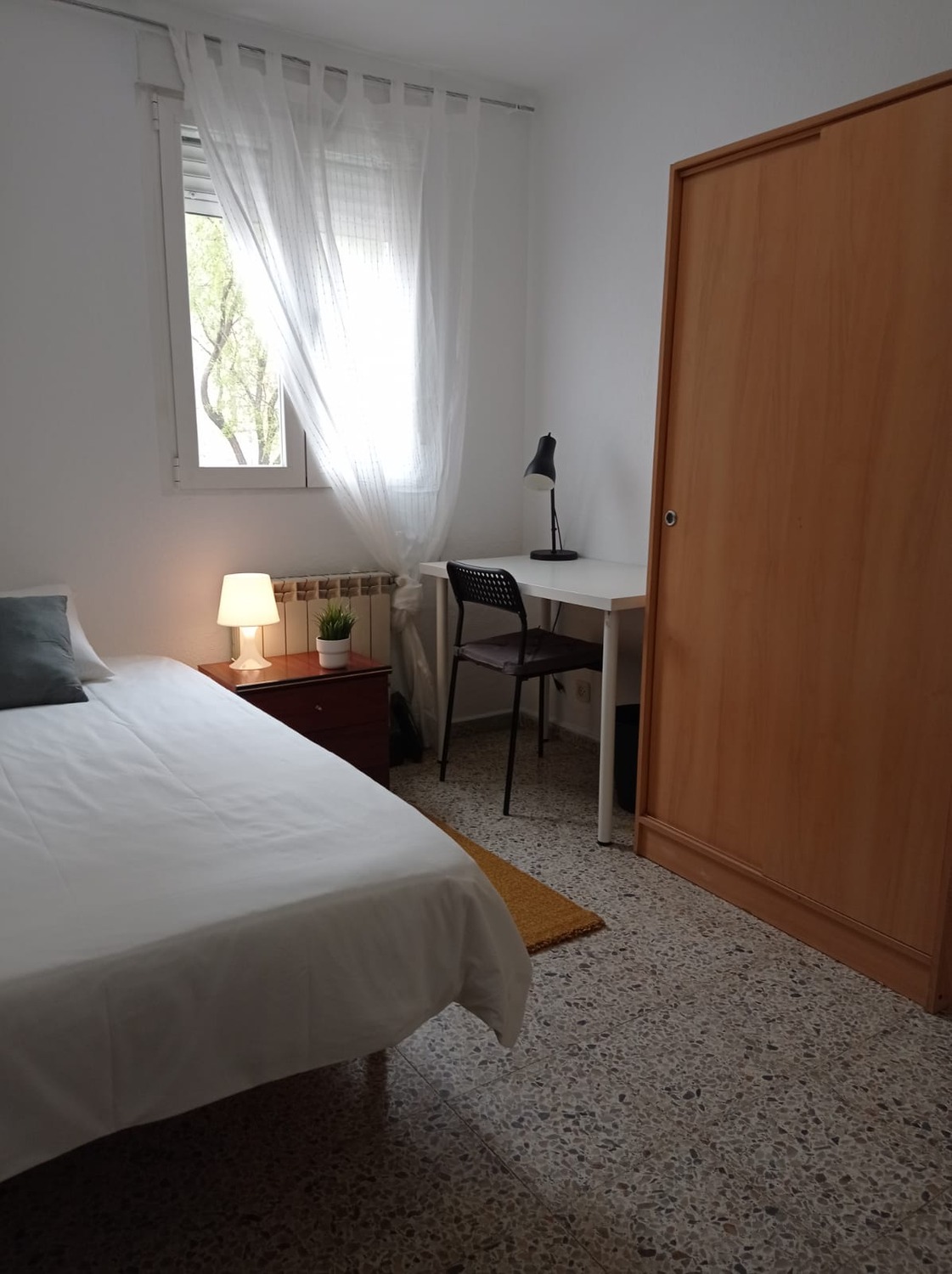 La habitación es muy luminosa y está perfectamente equipada, con los siguientes complementos: 1 cama de 1.05 m con almohada, juego de sábanas y edredón, mesitas de noche con lámpara, armario, escritorio con silla, calefacción por gas natural individual.