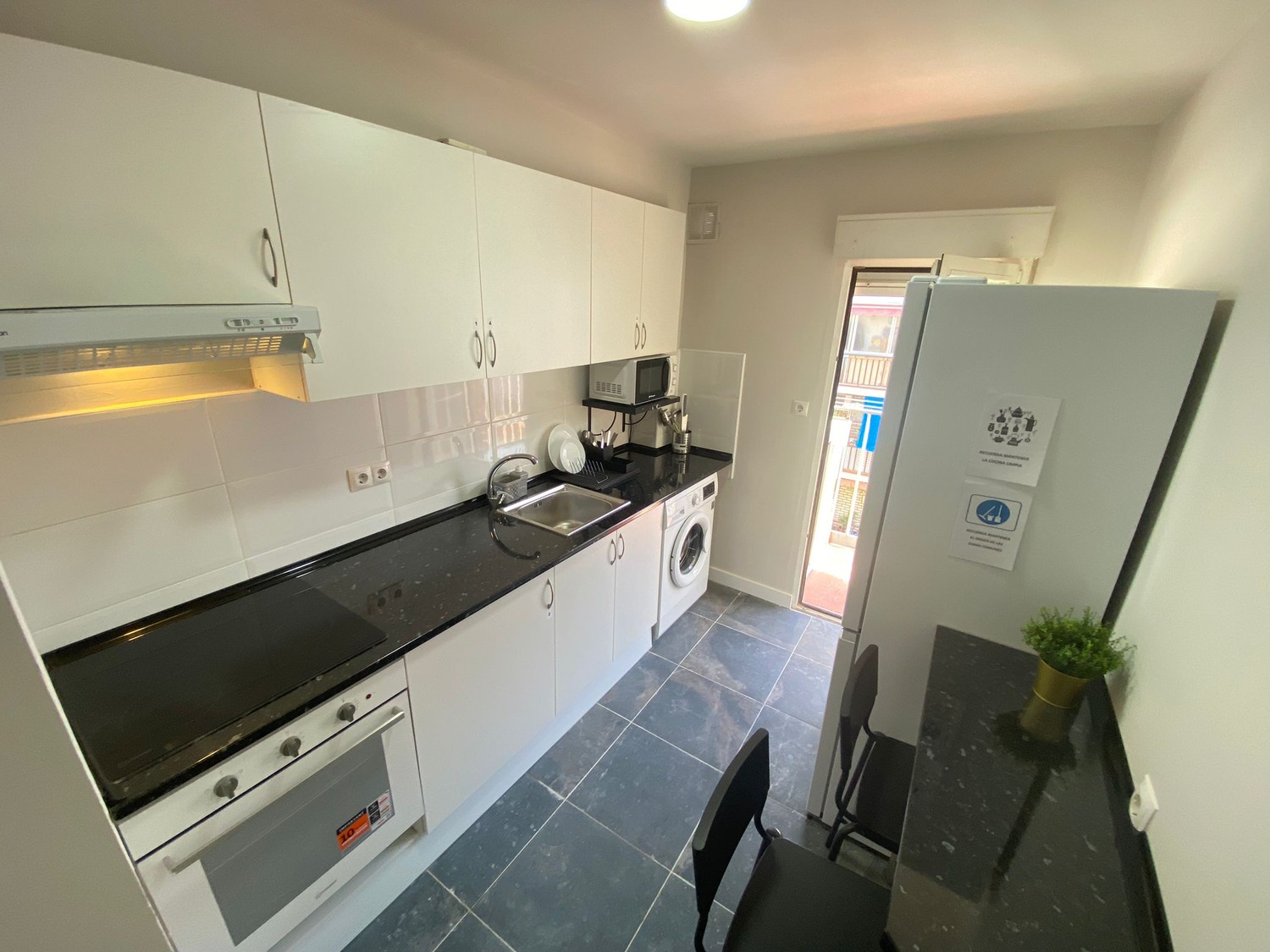 En cuanto a las zonas comunes, la vivienda cuenta con una amplia cocina, amueblada y equipada con todos los electrodomésticos (frigorífico, cocina, lavadora, microondas) y el menaje necesario (cacerolas, sartenes, cubertería y cristalería), mesa con dos sillas para desayunar, conexión USB en salón y habitaciones, etc. Existe además un baño con plato de ducha, cómodo y amplio compartido, que sólo es para uso de dos de las cuatro habitaciones (las otras dos cuentan con su propio baño en suite).