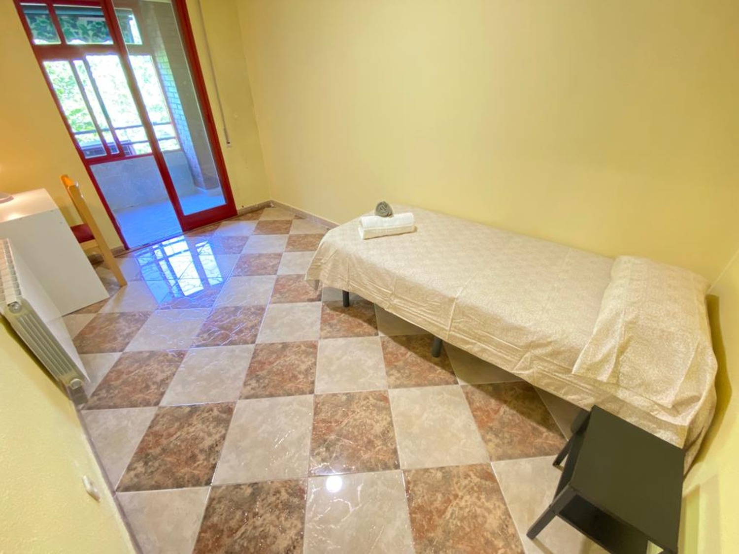 La habitación es muy luminosa y está perfectamente equipada, con los siguientes complementos: 1 cama de 1.05 m con almohada, juego de sábanas y edredón, mesita de noche con lámpara, armario. Calefacción por gas natural. Todas las habitaciones incluyen conexión Wifi por fibra de alta velocidad.