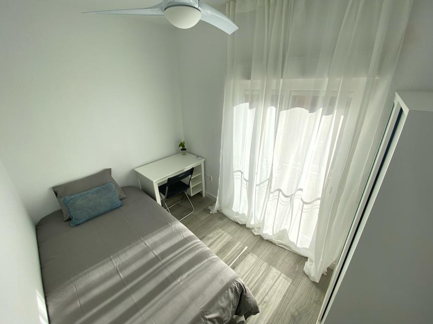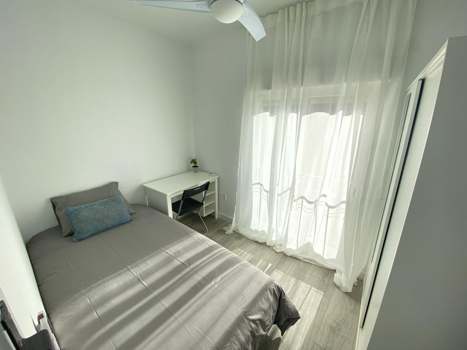 Capital Rooms alquila esta habitación en piso compartido zona comercial Villaverde. Ubicado Calle Concepción de la Oliva 12. Alquilamos esta habitación privada individual, perfectamente acondicionada y con iluminación natural, con una superficie aproximada de 7m2. Cuenta con un escritorio cómodo y una silla. El mobiliario se completa con un armario —en cuyo interior incluye una barra para las perchas— ventilador de techo con mando a distancia y calefacción por eléctrica, la cama de ancho de 1.05 cm. La vivienda cuenta con las siguientes zonas comunes: una amplia cocina con barra para desayunar o almorzar, equipada con electrodomésticos: vitrocerámica, campana, microondas y frigorífico. Cada habitación tiene un menaje propio (cubertería completa de uso exclusivo para cada huésped). Posee 1 baño completo con plato de ducha de cómodo acceso desde cualquier habitación y dotado de excelentes calidades. Limpieza dos veces al mes de las zonas comunes. Wifi de alta velocidad. La casa cuenta con lavadora propia. Puedes disfrutar de su inmejorable ubicación, a 550 metros del Renfe Villaverde bajo-cruce, Línea 3, (COLOR AMARILLO), con conexión directa a MONCLOA, PLAZA DE ESPAÑA, CALLAO, SOL y varias líneas de autobuses. A 15 minutos de la estación de Atocha, a 12 min en Metro al Campus Sur de la UPM, 30 min en Metro y 10 min en coche a Ciudad Universitaria. Disfrute de esta estancia acogedora, con una excelente convivencia controlada por profesionales. Consulte condiciones