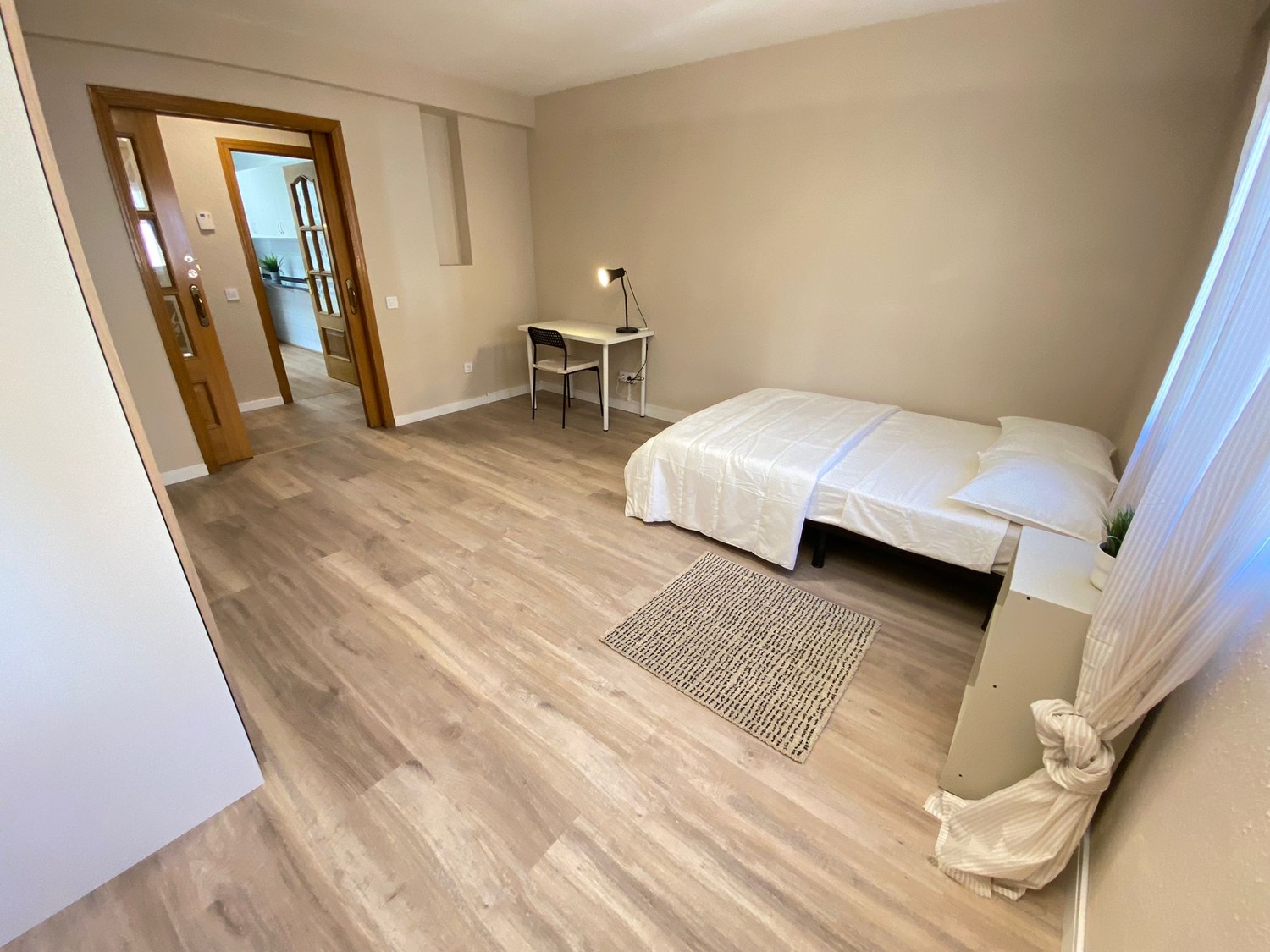 La habitación es luminosa y está perfectamente equipada, con los siguientes complementos: 1 cama de 1.35 m con almohada, juego de sábanas y edredón, mesita de noche con lámpara, amplio armario, escritorio con silla calefacción. Todas las habitaciones incluyen conexión wifi por fibra de alta velocidad.