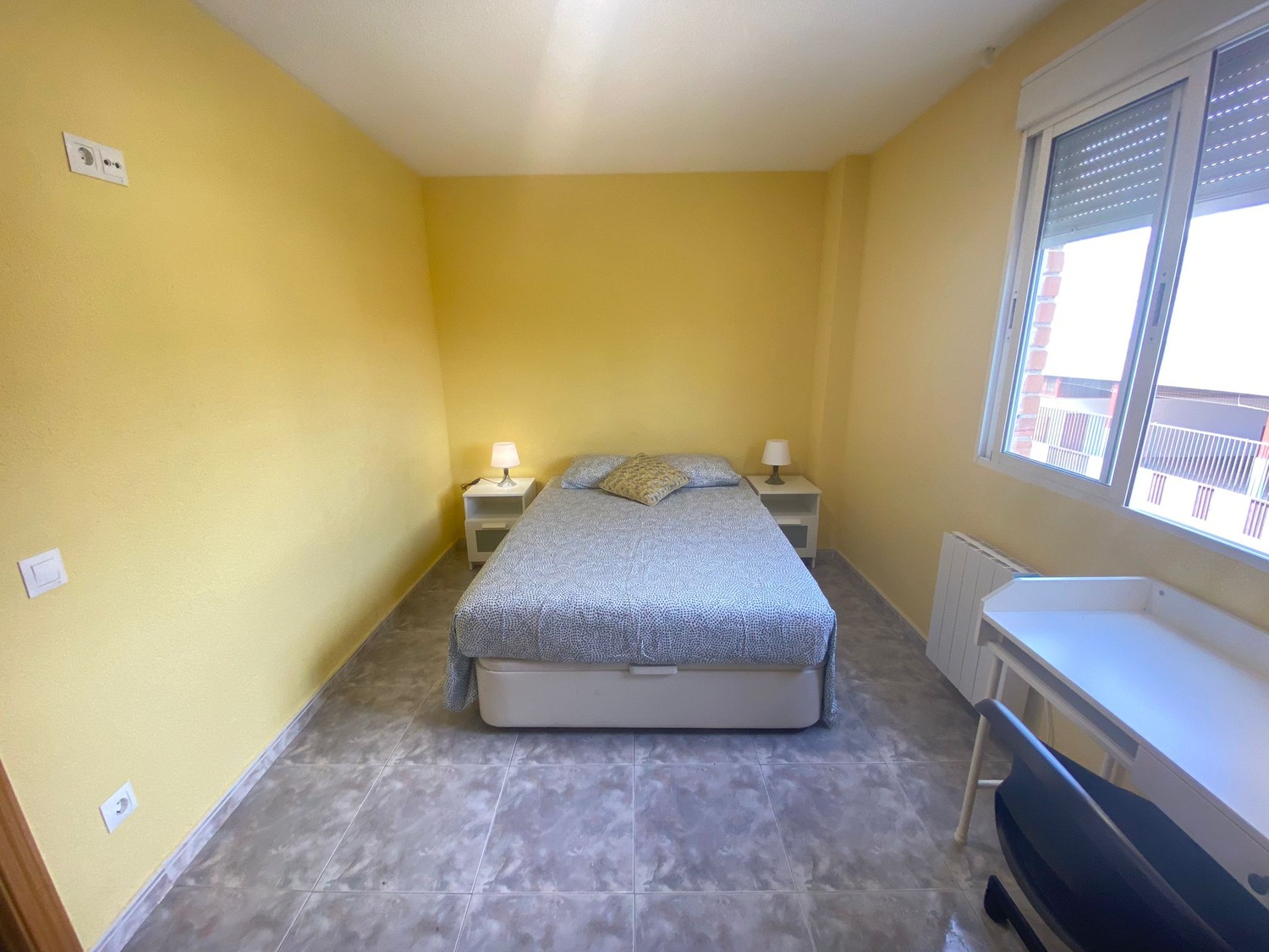 Capital Rooms alquila esta fantástica habitación doble en piso compartido, ubicada en la calle de Membezar 29, que pertenece al madrileño distrito de EntrevÃas. La habitación es muy luminosa y está perfectamente equipada, con los siguientes complementos: 1 cama de 1.35 m con almohadas, juego de sábanas y edredón, mesitas de noche con lámpara, armario. Calefacción por gas natural. Todas las habitaciones incluyen conexión Wifi por fibra de alta velocidad. En cuanto a las zonas comunes, la vivienda cuenta con una amplia cocina, amueblada y equipada con todos los electrodomésticos (frigorÃfico, vitrocerámica, lavadora, nevera, microondas), y el menaje necesario (cacerolas, sartenes, cuberterÃa y cristalerÃa) Asimismo, la propiedad cuenta con dos baños completos. Capital Rooms realiza dos limpiezas mensuales de las zonas comunes de este piso. Con respecto a la ubicación de esta vivienda, se enmarca en una zona privilegiada, y por tanto provista de todo tipo de servicios: pequeño comercio, restauración, bancos, centro de salud y farmacias, biblioteca nacional. Esta calle está a sólo 5 minutos a pie de la estación de renfe El Pozo, donde se distribuyen muchas lÃneas (C-2, C-7 y C-8 de cercanÃas de Madrid) a 18 minutos de la puerta de Atocha, a 30 minutos de la puerta del Sol y con una excelente comunicación con el extra radio (M31/M40) La zona, además, cuenta con el paso de varias lÃneas de autobús en las proximidades. Los gastos relativos a suministros (luz, agua, gas) no están incluidos en nuestras tarifas. Consulte condiciones. Concierta una visita sin compromiso, estaremos encantados de atenderte.