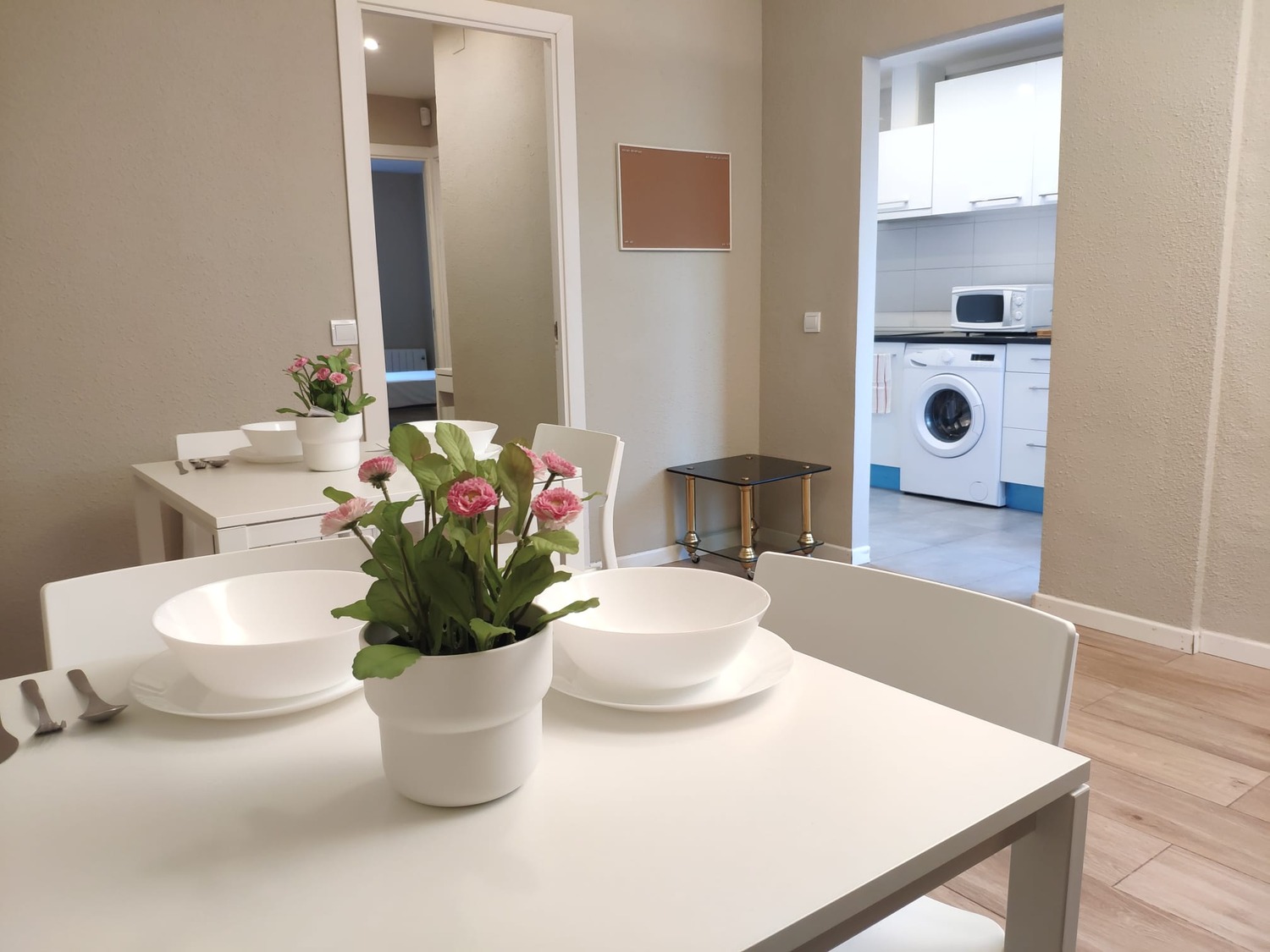 En cuanto a las zonas comunes, la vivienda cuenta con una amplia cocina, amueblada y equipada con todos los electrodomésticos (frigorífico, vitrocerámica, lavadora, caldera/calentador eléctrico, microondas) y el menaje necesario (cacerolas, sartenes, cubertería y cristalería). Asimismo, la propiedad cuenta con un Baño completo, con plato de ducha. Cuenta con un salón muy luminoso.