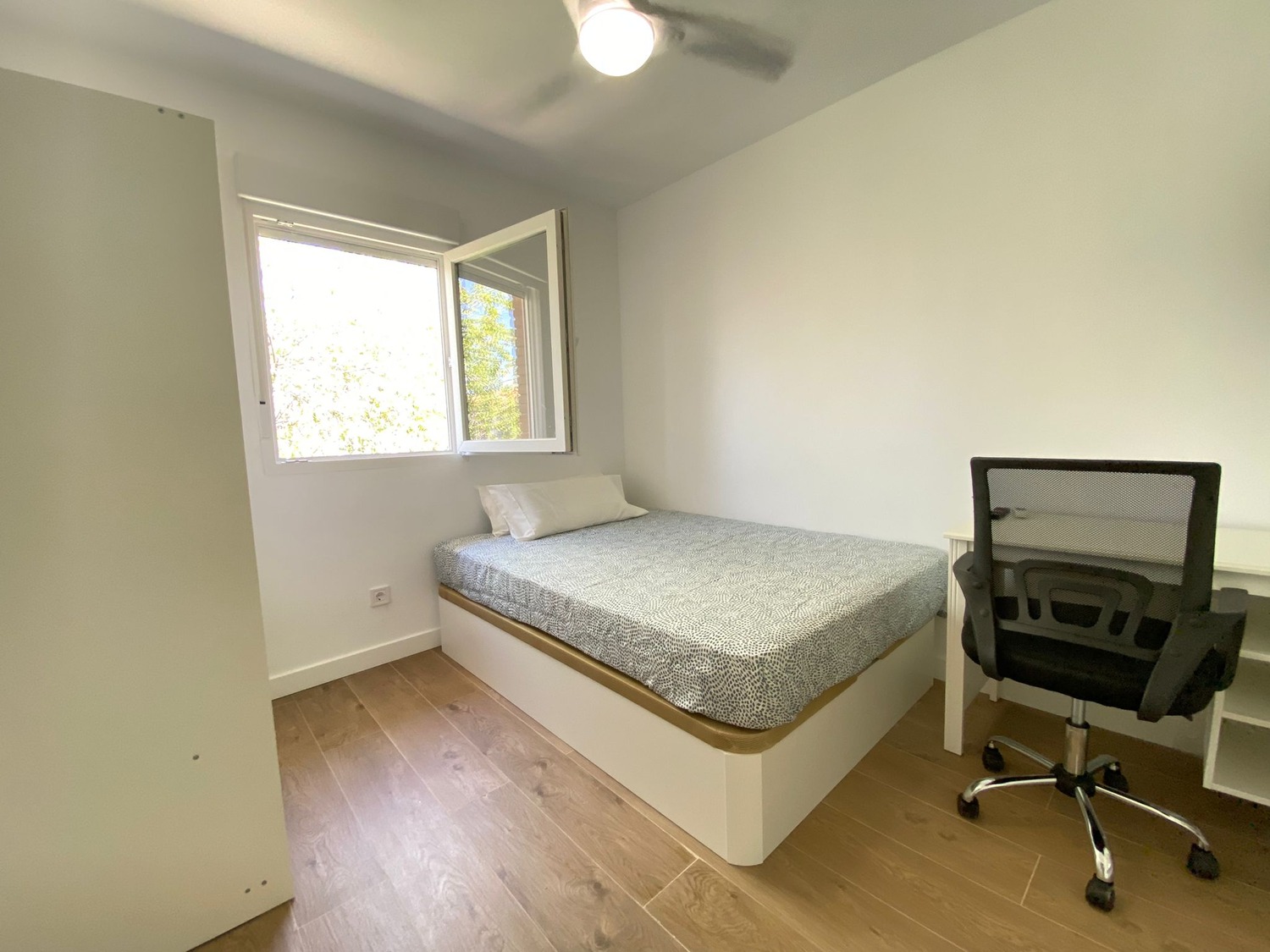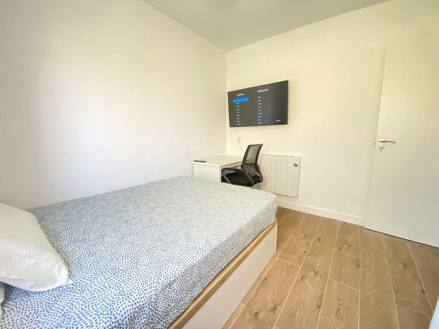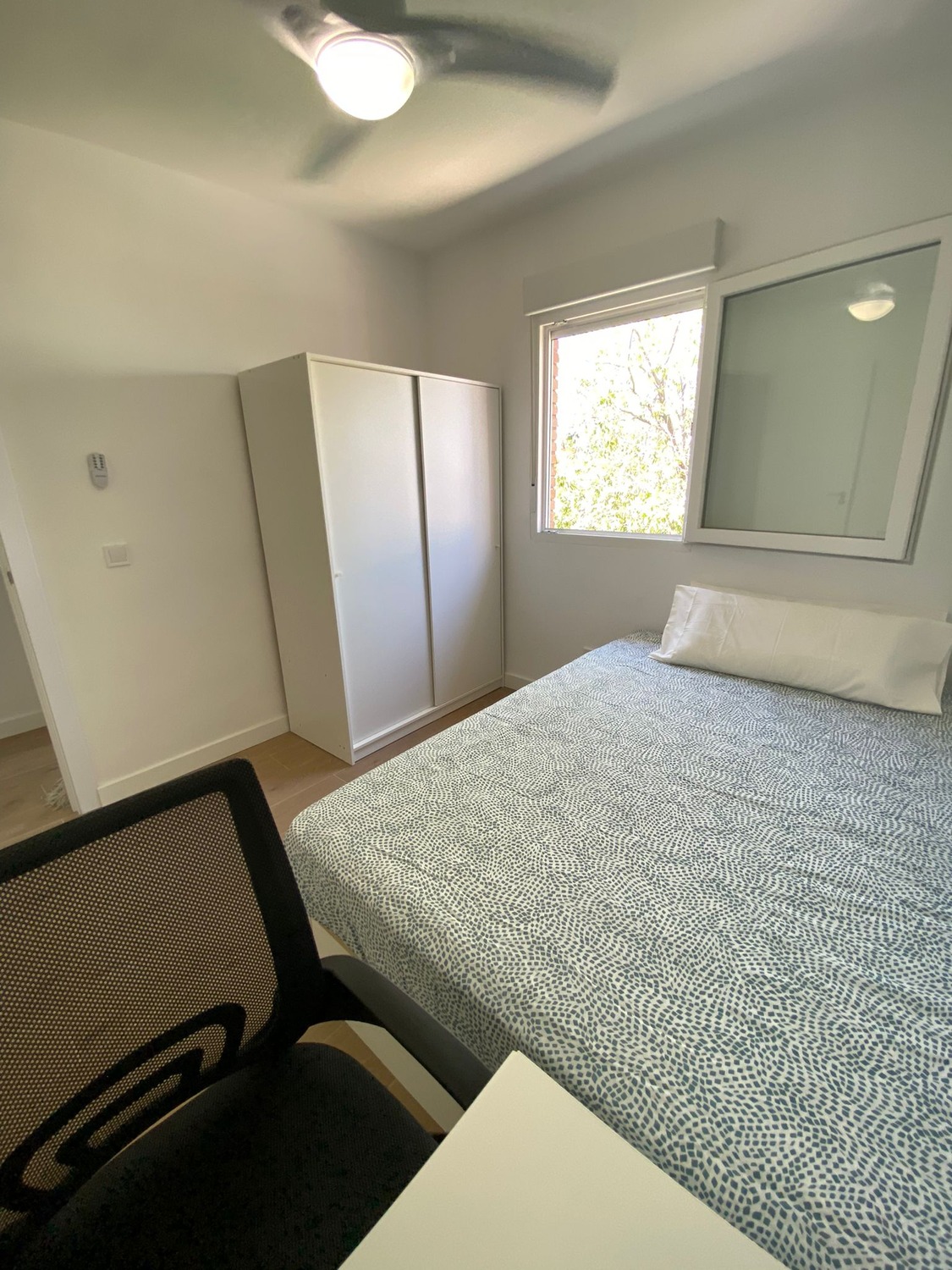 ¡Bienvenidos a la casa de estudiantes “Villaverde” ¡Estupenda habitación privada en alojamiento de estudiantes reformado en 2023, a estrenar! Alquilamos esta habitación privada, perfectamente acondicionada y con iluminación natural, con una superficie aproximada de 12m2. Cuenta con un escritorio cómodo con flexo, un televisor con Smart tv, una silla de conferencia. El mobiliario se completa con un armario de 1,55m —en cuyo interior incluye una barra para las perchas— ventilador de techo con mando a distancia y calefacción por eléctrica, la cama de ancho 1,35 m canapé abatible.