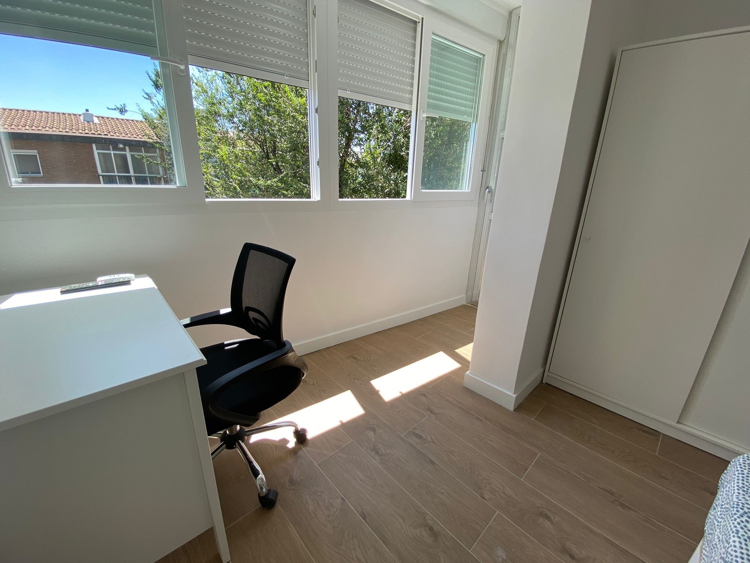 ¡Bienvenidos a la casa de estudiantes “Villaverde” ¡Estupenda habitación privada en alojamiento de estudiantes reformado en 2023, a estrenar! Alquilamos esta habitación privada, perfectamente acondicionada y con iluminación natural, con una superficie aproximada de 12m2. Cuenta con un escritorio cómodo con flexo, un televisor con Smart tv, una silla de conferencia. El mobiliario se completa con un armario de 1,55m —en cuyo interior incluye una barra para las perchas— ventilador de techo con mando a distancia y calefacción por eléctrica, la cama de ancho 1,35 m canapé abatible, además cuenta con espacio exclusivo de almacenaje, un pequeño trastero.