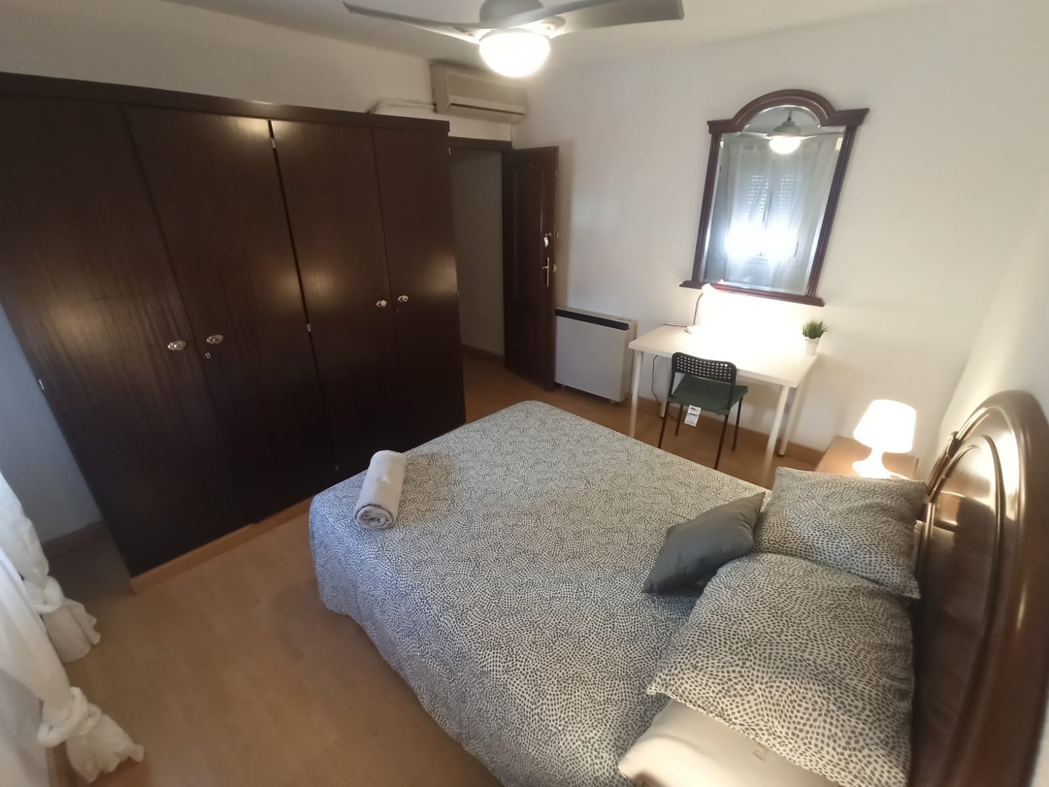 La habitación es muy luminosa y está perfectamente equipada, con los siguientes complementos: 1 cama de 1.35 cm con almohada, ropa de cama al completo, edredón y toallas, cuenta con 2 mesitas de noche con lámpara, armarios empotrados, espejo de pared, calefacción por gas natural y ventilador de techo.