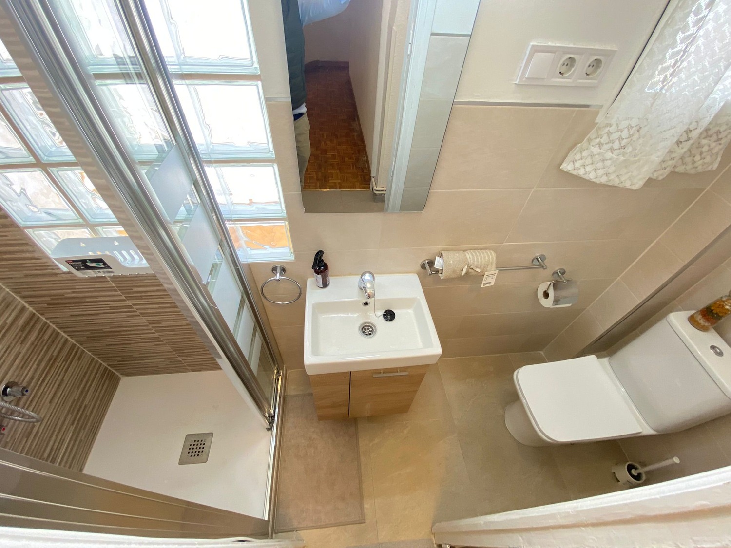 En cuanto a las zonas comunes nos encontraremos con un baño compartido con plato de ducha, cocina perfectamente equipada que cuenta con nevera, microondas y espacio para comer.