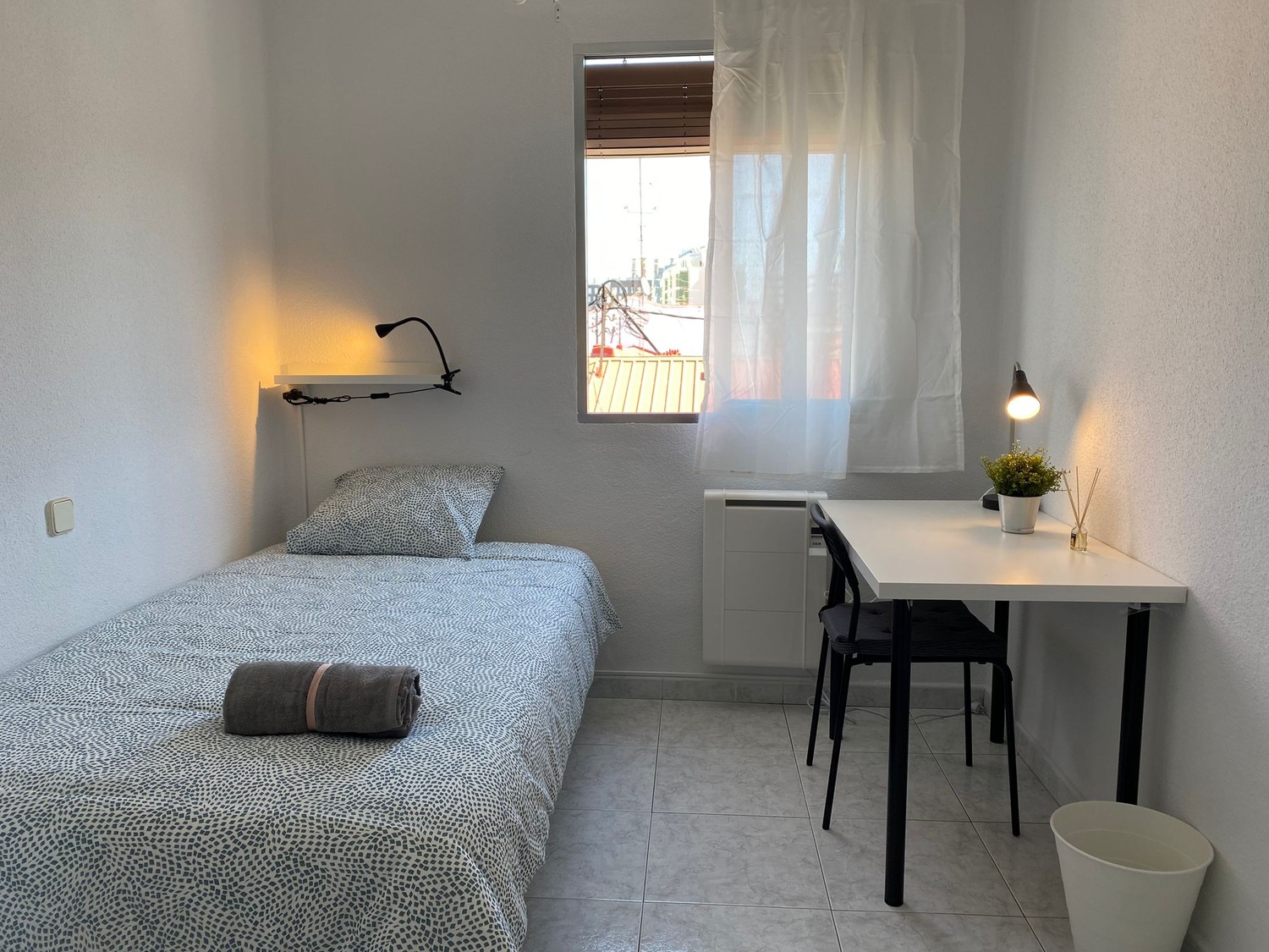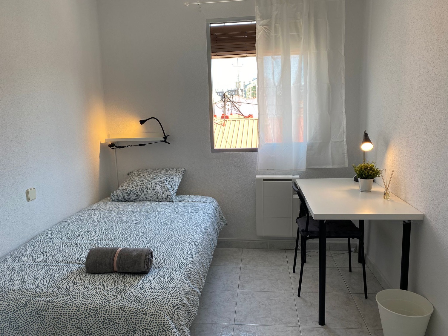 Capital Rooms alquila habitación en piso compartido, es luminosa está perfectamente equipada, con los siguientes complementos: 1 cama 1,5 con almohadas, juego de sábanas y edredón, mesita de noche con lámpara, un espacioso armario, calefacción por gas eléctrico individual y cerramientos de doble cristal con las mejores calidades.