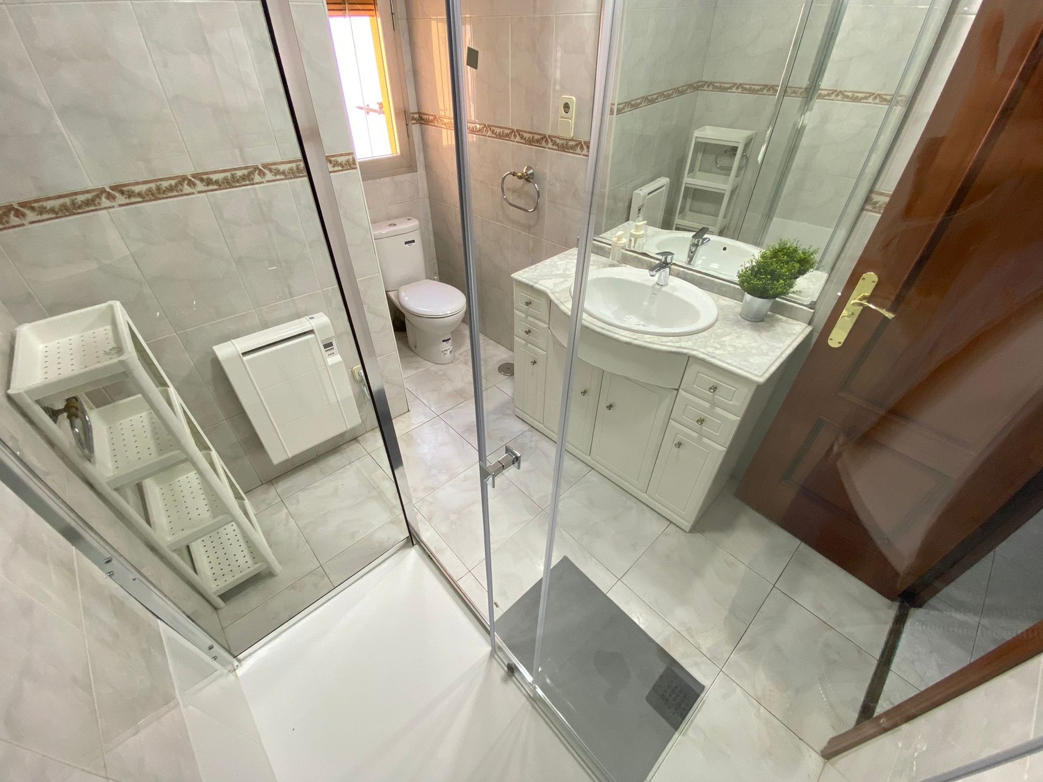 En cuanto a las zonas comunes, la vivienda cuenta con una amplia cocina, amueblada y equipada con todos los electrodomésticos (frigorífico, cocina, lavadora, microondas) y el menaje necesario (cacerolas, sartenes, cubertería y cristalería). Y un baño con plato de ducha, cómodo y amplio compartido para las cuatro habitaciones.