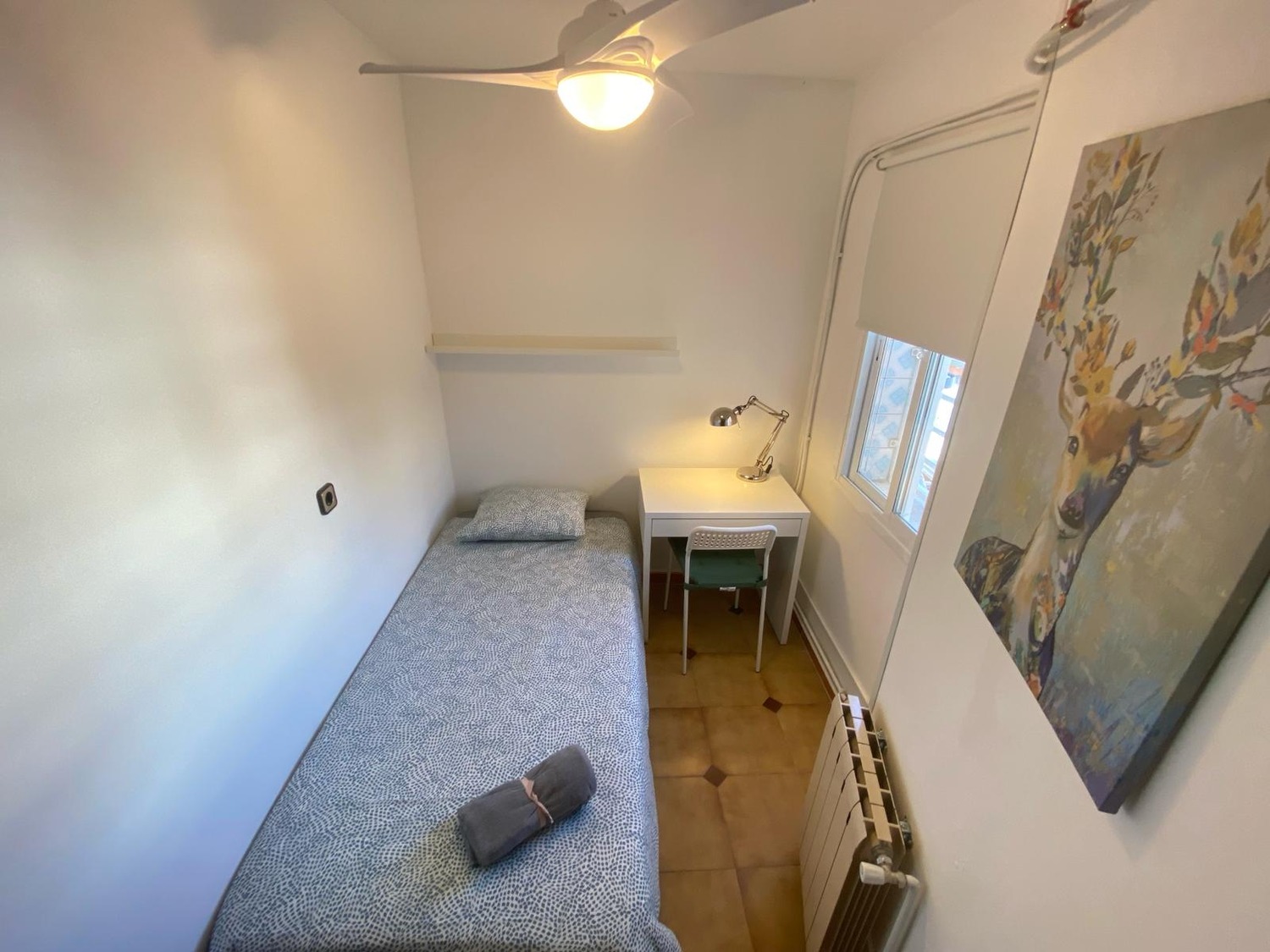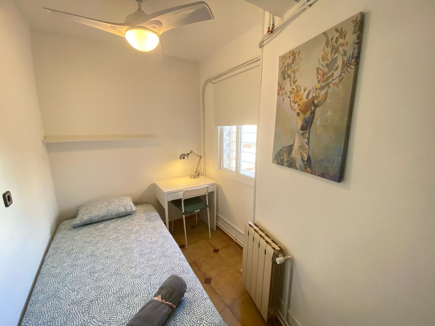 La habitación es luminosa y está perfectamente equipada, con los siguientes complementos: 1 cama individual cm con almohada, juego de sábanas y edredón, mesita de noche con lámpara, dos armarios, muebles con repisas para dejar libros o cualquier objeto, sofá, balcón amplio con vistas a la calle puerto de pajares , escritorio con silla para teletrabajar o estudiar y calefacción eléctrica. El piso cuenta con conexión wifi por fibra de alta velocidad.