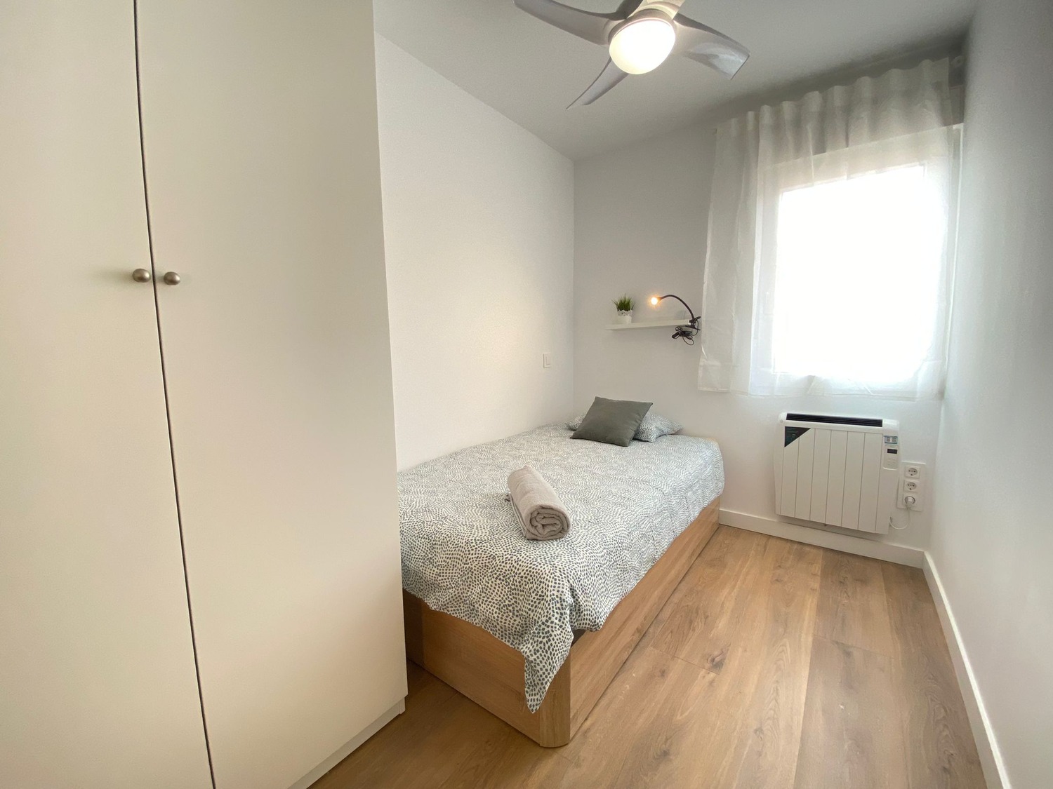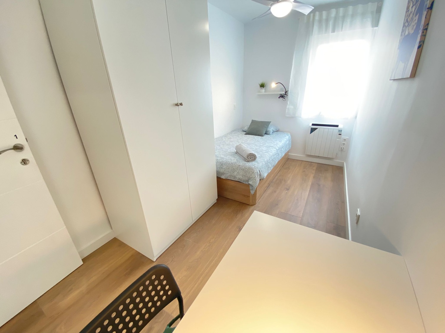 La habitación es muy luminosa, está perfectamente equipada, con los siguientes complementos: cama de 0,90 m con almohada, ropa de cama al completo, edredón, armario con divisores, cuenta con escritorio y silla, calefacción por eléctrica.