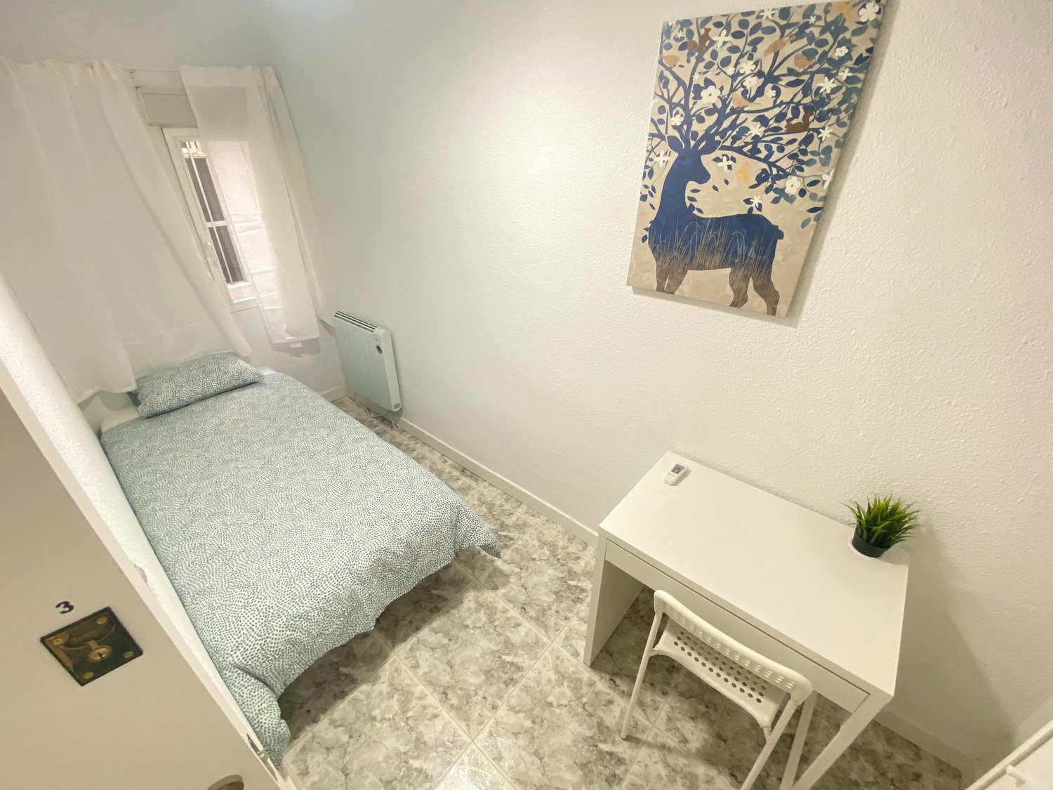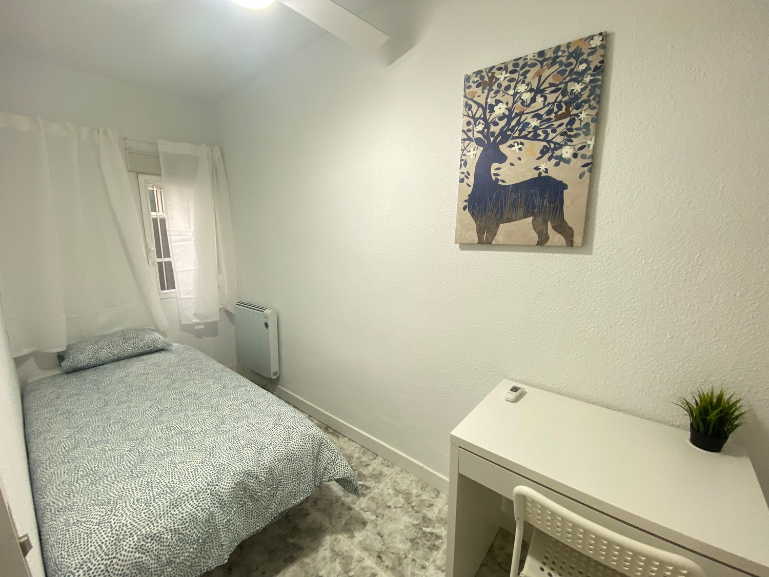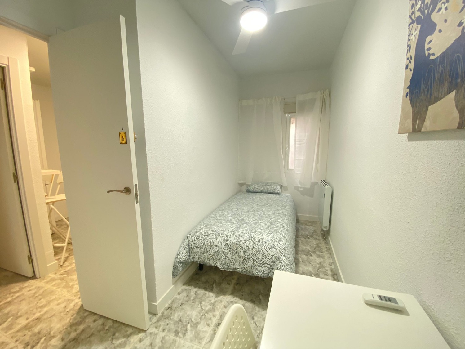 Capital Rooms alquila esta fantástica habitación Individual, ¡Bienvenidos a “Villaverde”! Estupenda habitación privada en alojamiento de estudiantes y jóvenes trabajadores a estrenar! Alquilamos esta habitación privada con cerradura, perfectamente acondicionada y con iluminación natural, con una superficie aproximada de 8m2. Cuenta con un escritorio cómodo, una silla de conferencia. El mobiliario se completa con un armario—en cuyo interior incluye una barra para las perchas— ventilador de techo con mando a distancia y calefacción eléctrica, la cama de ancho 1,00 m. La vivienda cuenta con las siguientes zonas comunes: Una amplia cocina con barra para desayunar o almorzar, equipada con electrodomésticos nuevos: vitrocerámica, campana, microondas y frigorífico. Disfruta de esta estancia acogedora, en un ambiente exclusivo para estudiantes, con una excelente convivencia controlada por profesionales.