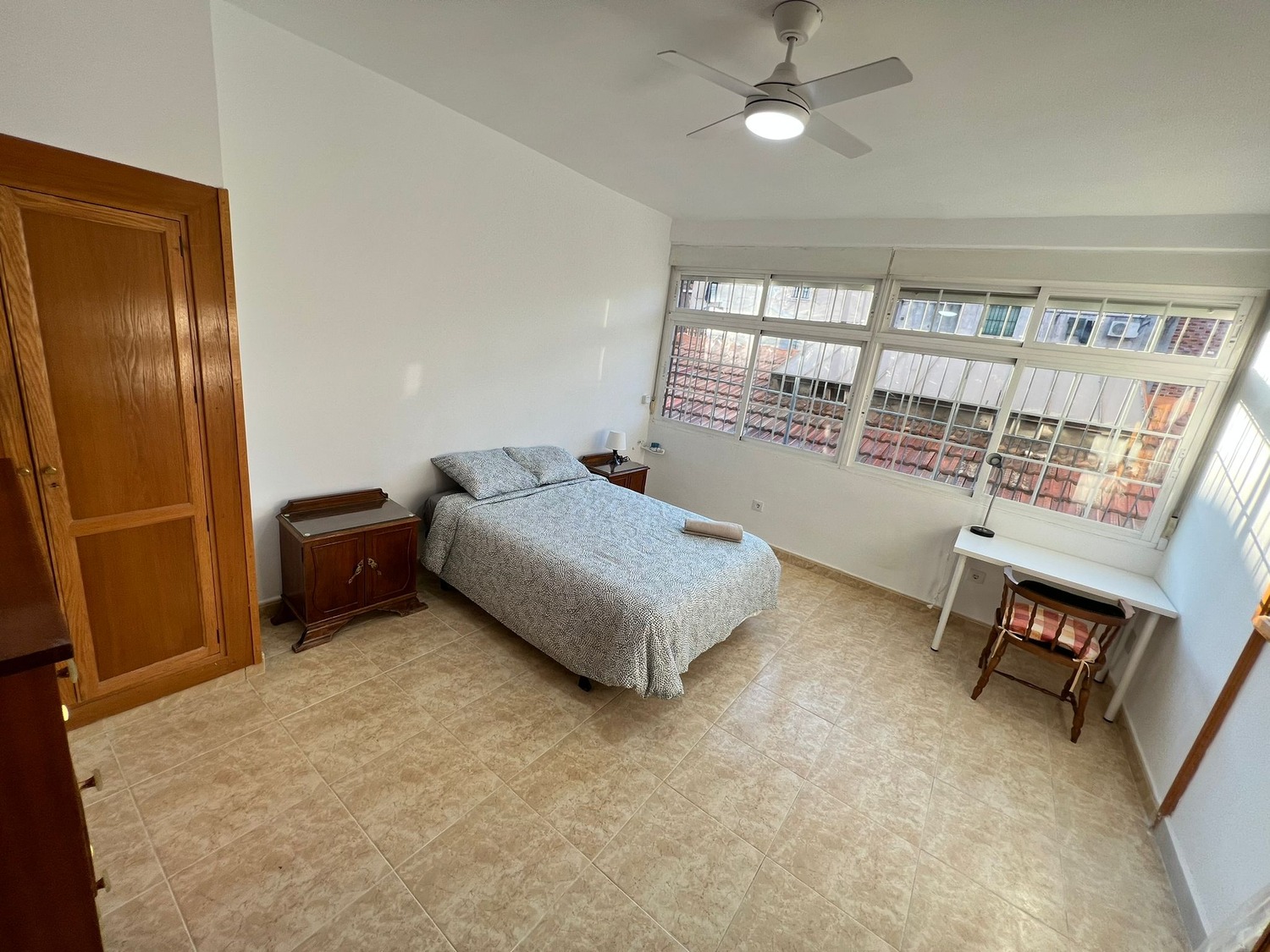 Rooms Madrid alquila esta fantástica habitación en piso compartido de 100 m2, ubicada en la calle Sierra Carbonera 84. La habitación es de 14 m2 y esta perfectamente equipada con los siguientes complementos: 1 cama de 1.35 m con almohadas, juego de sábanas y edredón, armario, escritorio con lámpara, silla y calefacción eléctrica.