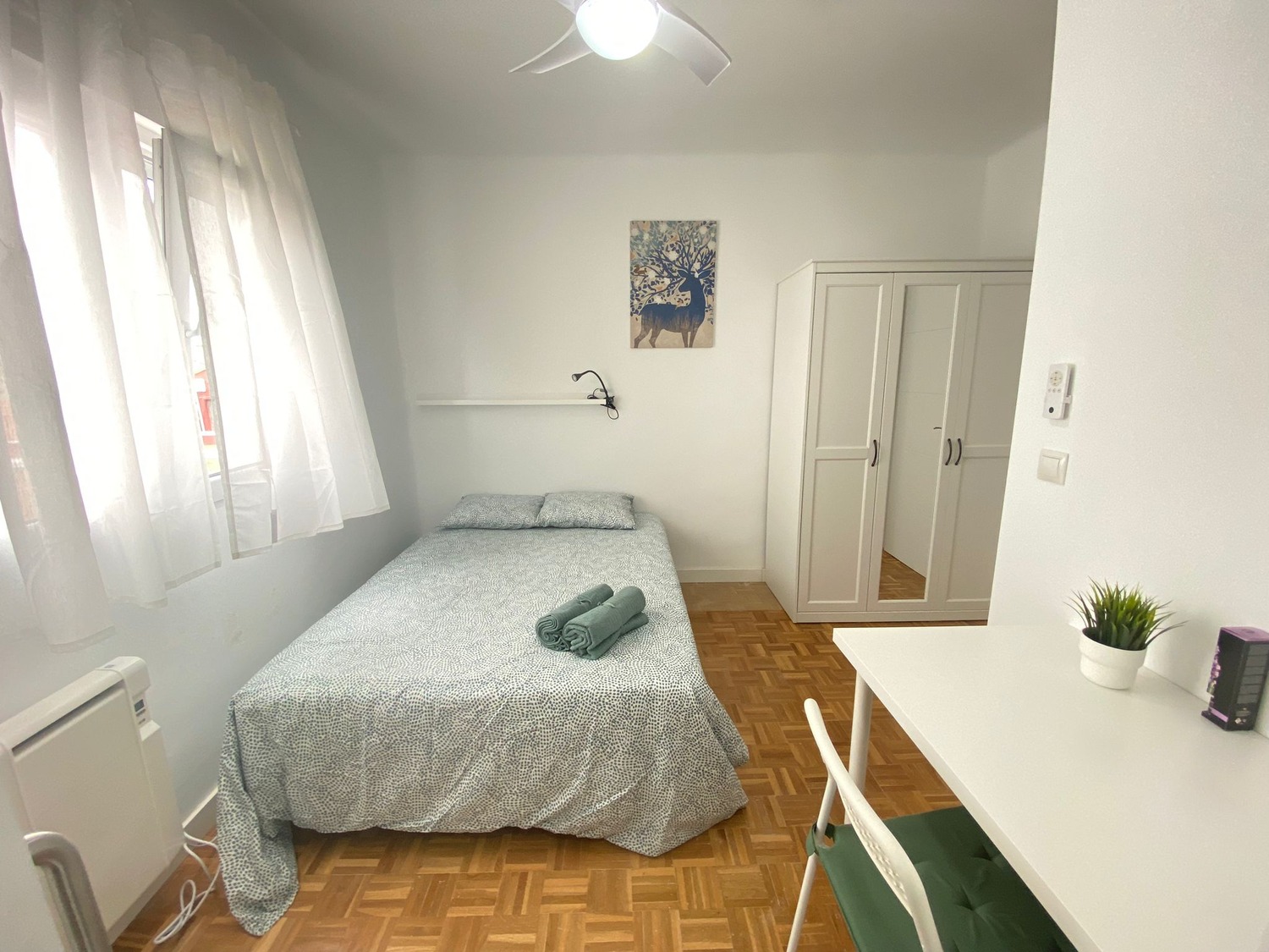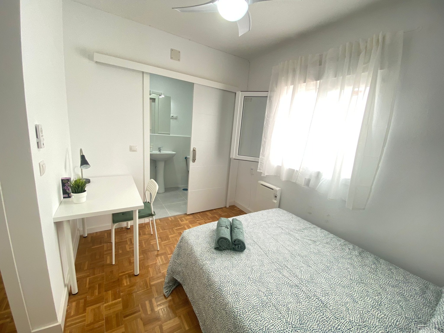 Habitación en piso compartido reformado, amplia y muy tranquilo. La vivienda cuenta con todo lo necesario para entrar a vivir; habitación amoblada con cama doble de 1.35, con almohadas, ropa de cama, baño privado con plato de ducha, armario doble con espejo, silla y escritorio funcional, mucha luz exterior, perfecto para tus horas de estudio o tele-trabajo. Cocina equipada con electrodomésticos nuevos, vitrocerámica, horno micro hondas, lavadora y utensilios (cubertería, ollas, sartenes) allí podrás comer en la mesa usando los taburetes de la misma. Calefacción eléctrica. Uno de los grandes beneficios que tiene el piso es su grandiosa ubicación, en los alrededores hay bares, bancos, restaurantes, farmacias, centros médicos, pequeños comercios, supermercados, un lugar para disfrutar al aire libre es el Parque del Cerro del Tío Pio(con colinas, senderos, vistas). Y puedes disfrutar a solo 2 minutos de la avenida La Albufera (Vía principal), al lado se encuentra la estación del metro Nueva Numancia línea 1(L. AZUL) y varias líneas de autobús, a 7 minutos de la estación de Puerta de Atocha y a 10 minutos de la Puerta del Sol, a 12 min en Metro al campus sur de la UPM, 30 min en Metro y 10 min en coche a la ciudad universitaria, piso muy acogedor, excelente convivencia. Consulte condiciones. Concierta una visita sin compromiso, estaremos encantados de atenderte.