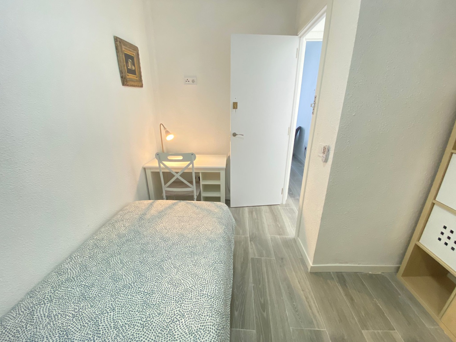 ¡Bienvenidos a “Villaverde”! Capital Rooms alquila, ¡Estupenda habitación privada en alojamiento de estudiantes y jóvenes trabajadores recientemente reformado, a estrenar! Alquilamos esta habitación privada con cerradura, perfectamente acondicionada y con iluminación natural, con una superficie aproximada de 7m2. Cuenta con un escritorio cómodo, una silla de conferencia. El mobiliario se completa con un armario de 1,55m —en cuyo interior incluye tendedero y una barra para las perchas— también dispone de un mueble alto con cajones de cubo, ventilador de techo con mando a distancia y calefacción eléctrica, la cama de ancho 1,05 m. La vivienda cuenta con las siguientes zonas comunes: Una cocina con barra para desayunar o almorzar, equipada con electrodomésticos nuevos: vitrocerámica, campana, microondas y frigorífico. Con todo menaje necesario (cubertería completa de uso exclusivo para cada huésped). Posee 1 baño completo con plato de ducha de cómodo acceso desde cualquier habitación y dotados de excelentes calidades. Otros servicios añadidos: Limpieza dos veces al mes de las zonas comunes. Wifi de alta velocidad. La casa cuenta con lavadora propia. Puedes disfrutar a de su inmejorable ubicación, a 500 metros del metro Villaverde bajo, Línea 3, (COLOR AMARILLO), con conexión directa a MONCLOA, PLAZA DE ESPAÑA, CALLAO, SOL. y varias líneas de autobuses, a 15 minutos de la estación de Atocha ya 10 minutos de la Puerta del Sol, a 12 min en Metro al Campus Sur de la UPM, 30 min en Metro y 10 min en coche a Ciudad Universitaria. Disfruta de esta estancia acogedora, en un ambiente respetuoso y bien cuidado y, con una excelente convivencia, controlada por profesionales. Consulte condiciones