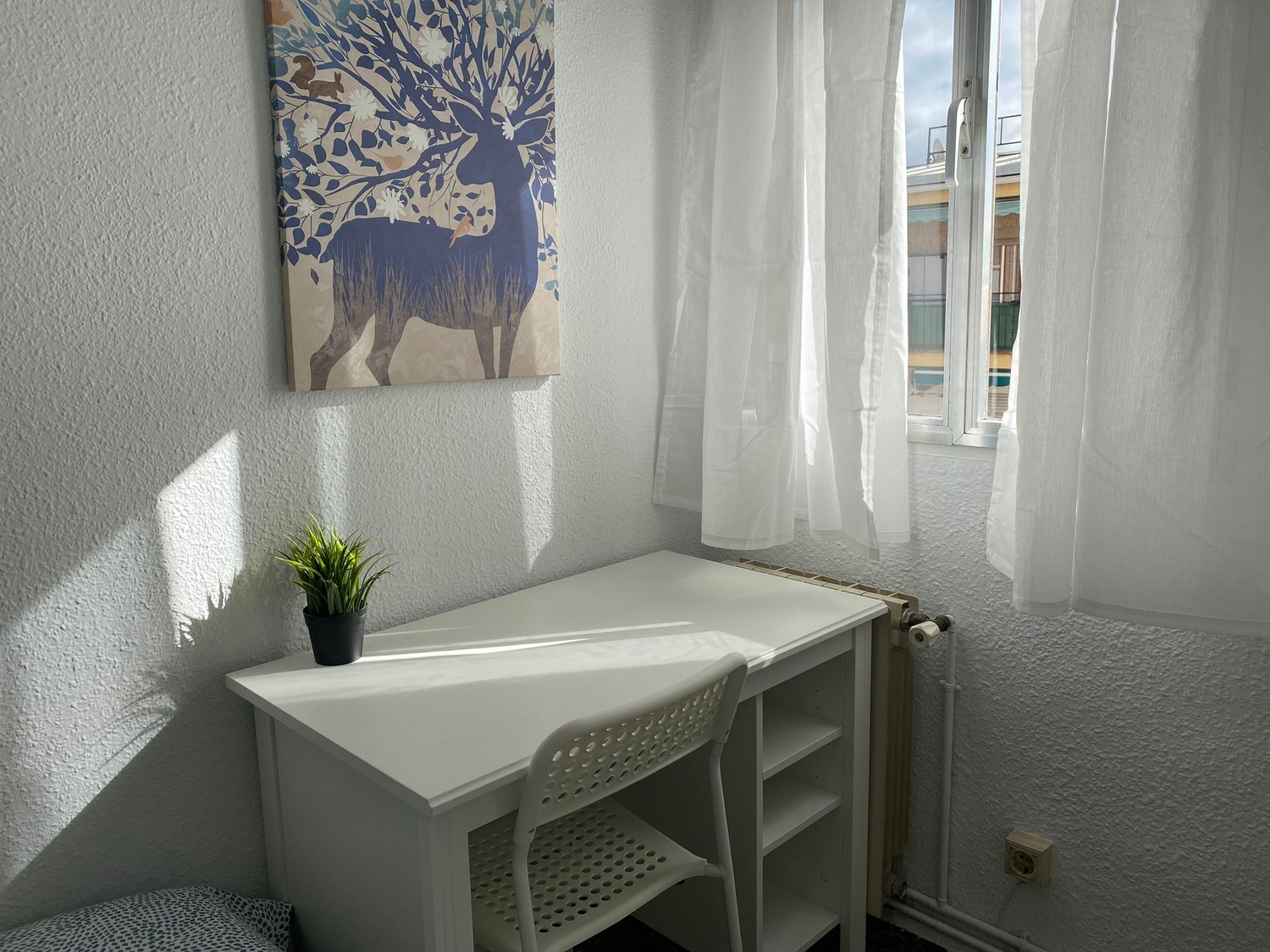 Capital Rooms alquila fantástica habitacion en piso compartido, ubicado en la Calle de Tordegrillos, 36, en Villaverde. A solo 5 min andando de la parada de Renfe de Villaverde Alto, y línea 3 de metro, con parada de autobús a solo 1 min del portal — línea 22), con el supermercado DIA a solo 3 minutos a pie. Es un barrio consolidado, tranquilo y seguro que se caracteriza, por tener cerca restaurantes, cafés, farmacias, GYM a tres minutos andando y zonas verdes para disfrutar. En cuanto a las zonas comunes, la vivienda cuenta con calefacción por gas natural, cocina amueblada y equipada con todos los electrodomésticos (frigorífico, cocina, lavadora, microondas) y el menaje necesario (cacerolas, sartenes, cubertería y cristalería), y un baño compartido con plato de ducha, cómodo y amplio. La habitación tiene una superficie de 8 m2, es luminosa y está perfectamente equipada, con los siguientes complementos: 1 cama de 90 con almohadas y cojines, juego de sábanas y edredón, un armario, escritorio de estudio. Todas las habitaciones incluyen cerradura con llave privada conexión wifi por fibra de alta velocidad.