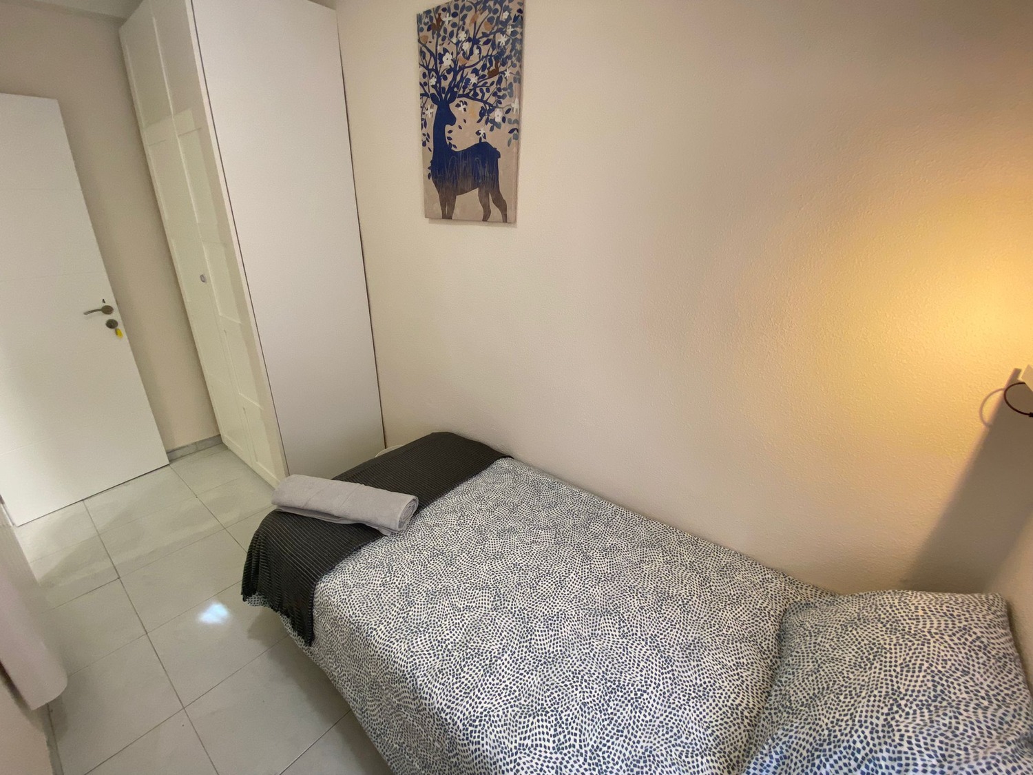 La habitación es de 8 m2, muy luminosa y perfectamente equipada con los siguientes complementos: 1 cama de 1.05 m con almohada, juego de sábanas y edredón, armario, escritorio con lámpara, silla y calefacción eléctrica.